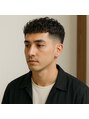 サイドと襟足をタイトに刈り上げ、トップにしっかりパーマで動きを。弾むようなカールが立体感を生み、濡れ感の質感で大人の色気を演出。