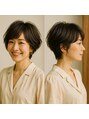 ふんわり動くレイヤーショート。 正面は軽さと丸みが出るように、横顔はタイトに締めてメリハリを。 ツヤ感のある柔らかな質感で大人らしい上品さを演出。