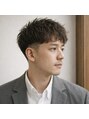 サイドと襟足をタイトに整えたツーブロックに、トップは弱めのニュアンスパーマで自然な動きをプラス。軽さを重視したシルエットで、清潔感のある大人スタイルです。