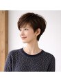 短めトップに軽い動きをつけたナチュラルなショートスタイル。サイドはタイトに整え、前髪は柔らかく流れる仕上がり。全体をセミドライ質感で自然に整えています。
