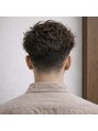 トップに自然なくせ毛風の動きを出したショートスタイル。サイドと襟足は低めに刈り上げ、横から見たシルエットもすっきり。柔らかさと清潔感を両立したデザイン。