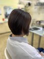 後頭部にふんわり丸みをつけた、大人ショートスタイル。首まわりはすっきりさせているので、横顔や後ろ姿まできれいに見えるシルエットに仕上げています。乾かすだけでも形が整いやすく、毎日のスタイリングがラクなのも嬉しいポイント。