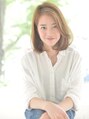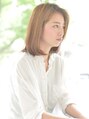 ナチュラルなボブスタイル。立ち上がった前髪の毛先が頬骨を引き締め、小顔に見えるように計算してカット。サイドもふんわりさせることで骨格をカバーし、可愛く仕上げています。カラーはシアーサファリ。≪心斎橋&なんば≫
