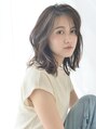 ベース型の方は顔周りに細い毛束で動きを作ることで骨格カバー。前髪も細い毛束の質感でシースルーバングを作り、柔らかい印象に見せています。軽めのスタイルでもパサついて見えないように少し暗めのアッシュブラウンに。≪心斎橋&なんば≫