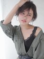 前髪を頬骨ラインで切り、動かし頬骨をカバーして小顔に見せています。動くように小さな段を入れて軽くしています。バイオレットブラウンで染めてツヤ+上品さを出しています。色持ちもすごくいいです♪