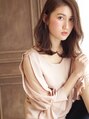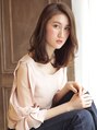 前髪は頬が隠れるように長めで切っています。巻いた時にゆらっと揺れるように軽くしています。カラーはアッシュブラウンで大人の上品さをプラス。ツヤが出て色持ちも良く、色が抜けてきた時に下品な色味にならないようにしています。