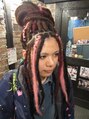 全頭にドレッドエクステを施しました♪ブラウン・ブラックをベースに、ワインレッドろピンクのメッシュを入れました♪個性的スタイル間違いなし!!