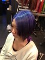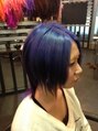 ブリーチ後、襟足に紫。その他にブルーをONカラーしました♪♪色合い的にグラデーションカラーっぽくなっています♪♪