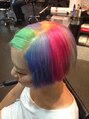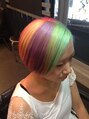 ショートボブのレインボーカラー♪全部うすめた、赤・青・黄・紫・緑・オレンジ・ピンクで構成されてます!豪華です☆