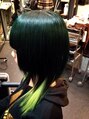 人気のインナーカラーで、うすめのキミドリです☆髪をめくったり、なびいたりすると中の色が際立つので、グラデーションと少し違った感じになります♪