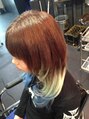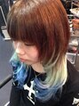 エクステを使って、グラデーションを作りました。地毛のナチュラルから白っぽいエクステがでるように付け。エクステの毛先に青をONカラーしています。