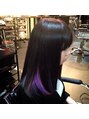 インナーカラーで、落ち着いた感じを出しつつ、ちらっと、派手カラーが見えるようにカラーリングしました。全頭、原色カラーに抵抗がある方にはおススメ♪