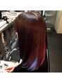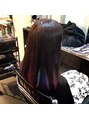 インナーカラーで、落ち着いた感じを出しつつ、ちらっと、派手カラーが見えるようにカラーリングしました。全頭、原色カラーに抵抗がある方にはおススメ♪
