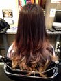 根元から毛先にかけてグラデーション毛先はブリーチ2回ほどしないとキレイに色が入りません・・・・がんばりましょう♪