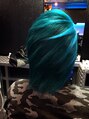 刈り上げの一線ライン部分のみエメラルドグリーン、その他部分は濃いグリーンを入れています^^セットのことを考えたデザインカラーです♪