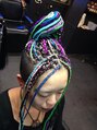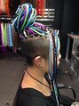 2ブロックにバリカンで作り、残った部分を、特殊エクステでブレーズに♪おろすと、バリカン部分も見えないように作っています。