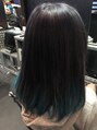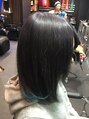 インナーカラーの水色に、ベースは6レベルのグレーで落ち着いた印象に。水色はブリーチ回数が必要になってきますのでカラー後はホームケアをしっかりしてあげてください。