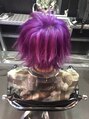 サイド、バックを刈上げてのレイヤースタイル!色は濃いめのムラサキで全体をカラー!刈上げているので、ウィッグをかぶる方にも最適な髪型です☆