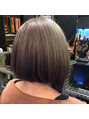 極端に長さの差をつけた、前下がりボブ!グラデーションにカットし、インナーのブルーがちら見えするようにしました。全体はミルクテーアッシュにカラーリング☆