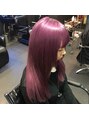 クリアなピンクパープル!ブリーチ→アッシュにオンカラー→ピンクパープルにオンカラーという手順で作ってます♪アッシュをはさんでいるので、色落ちも綺麗です☆