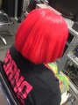 ブリーチ1回での、レッドオレンジです☆赤系のカラーは一回やれば、キレイに入ります♪黒染めや暗めにされている方はご相談ください!