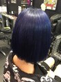 ブリーチ後にマニックパニックのブルーをのせました!少し暗くなるように、調合してあります☆根本は染みないよう空けてブリーチ。カットは重ためのボブで、毛先に少し軽さを出しています♪