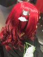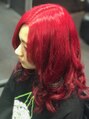ブリーチ後、マニパニのヴァンパイアレッドをオンカラー。黒メッシュをエクステの黒でだしています!黒染めよりも後にカラーチェンジがしやすいです☆