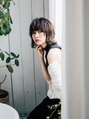 前髪、顔まわりは長めに残して、トップを短くしたウルフスタイルです。外ハネすることで全体のフォルムのバランスをとっています。カラーはダークカラーにハイライトを全体に入れてかっこいい雰囲気に。【瀬田】