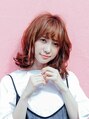 レングスは肩につく長さで切りっぱなしっぽく。バングも巻くので少し長めに目にかかる長さで。巻くのが苦手な方は前髪パーマがオススメ。カラーリングは明るめでオレンジがしっかり出るようにそめました。波巻きにして毛先を外にスタイリングしましょう。