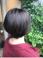 襟足はかなりスッキリさせたショートボブスタイル☆トップにはレイヤーをあまり入れず、収まりとツヤ感が出るよう少しだけ重めカットに♪