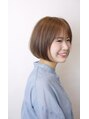 前下がりショートボブ、顔周りは顎ラインで小顔効果にカラーもハイライトを入れて軽い仕上がりと色落ちを楽しめるようになってます。バングは内側はシースルーを潜ませてスタイリングで遊べるようにしました、