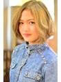 ”ハイトーンのクリームベージュボブ”です。今までのカラーやスタイルに飽きた方、大学や専門学校に新入学される方にもオススメのスタイル☆長さもボブにすることでいやらしくなく、パサツキも抑えられるため動きがありながらも艶と質感を維持できるのが◎