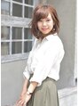 定番のボブでもカラーでツヤッと魅力倍増!!ふわり柔らかくする秘訣はアッシュ系のカラーと程よく入ったスライドカット!!巻くだけで自然と束感と空気感が出るので実用性も抜群のスタイルです♪バングのテイストを変えるだけでクールなイメージにもできます。