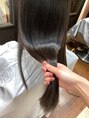 特許取得トリートメント液晶乳化を使用した縮毛矯正でダメージのない、まとまりのあるスタイルに!薬剤知識豊富なスタイリストがダメージを見極めて、薬剤やトリートメントを厳選!クセが強い方や傷みが気になる方は是非柔らかい質感の艶髪を実感して下さい。