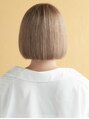 ワンレングスのきれいなカットラインが魅力。お顔が丸く見えないように短めの長さで設定して、重さの来る位置を少し高めにしてシルエットがひし形になるように調整。前髪もお顔の肌の見える範囲を計算しどこからみても自信が持てるボブです。