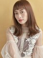 くせ毛風切りっぱなしがかわいい。オン眉バングで目力アップ。秋メイクも楽しめるトレンドミディアムヘアに。トップがペタンとなりやすいので、表面の部分は長さを変えて動きを出しやすくカットしています。くせ毛を活かしたカットが得意です。