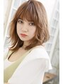 自然に肩に当たってハネた感じがかわいい外ハネは、リラクシーな雰囲気を漂わせます。内巻きにするのが定番ですが、今回はあえて外ハネにしてあか抜けた感じを演出しています。全体にレイヤーを入れて毛先を軽くし、目ギリギリの前髪がポイント。