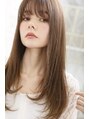 前髪はシースルーバングで、顔周りにのみ前上がりのレイヤーを入れた、ほぼワンレンのロングヘア。女性らしい、愛らしい“お人形”のような雰囲気でありつつも、フェミニンすぎないようにするのが今っぽヘアのポイント。