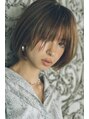 女性らしいソフトなデザインの中にクールな印象を織り交ぜた大人ボブです。スライドカットによるソフトなレイヤーと長短をつけた前髪でバランスを整えています。カラーはオレンジベージュにして鮮やかな発色とツヤ感を叶えました。