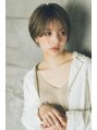 ナチュラルなテクスチャーが今っぽいショート。カットで量感を落として柔らかさを出し、顔まわりは軽さと束感をつけて。前髪はシースルーバングにして自然なダウンスタイルに。カラーは9レベルのラテカラーをベースにハイライトでアクセントを。