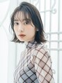 肩に乗る長さのワンレングスボブに ハチ上から入れたレイヤーと前髪の透け感で抜けを演出。 顔まわりの毛は長めに設定し、小顔効果が期待できるスタイルです。