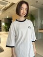 アゴラインに切ったミニボブスタイルです。カットラインをぷつっとさせるのがポイントです。カラーは8トーンのアッシュベージュに染めています。