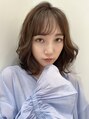 毛先にワンカールを加えてパーマ風に仕上げたミディアムスタイルです。顔周りと襟足はリバース(外巻き)にして、表面はフォワード(内巻き)にし、全体をひし形のシルエットにする事でバランスの取れた巻き髪風の大人モテ髪です。