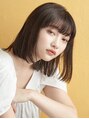 このスタイルは、お客様にあわせた長さの設定が重要。あご下より長くカットして毛先が動くアソビを作ることが大切。そうすることで、丸顔さんでも切りっぱなしのワンレンボブが似合います。シースルーバングにすることで奥行き、立体感をプラスして。