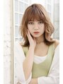 自然に肩に当たってハネた感じがかわいい外ハネは、リラクシーな雰囲気を漂わせます。内巻きにするのが定番ですが、今回はあえて外ハネにしてあか抜けた感じを演出しています。全体にレイヤーを入れて毛先を軽くし、目ギリギリの前髪がポイント。
