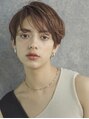 マッシュショート/ハンサムショート/ワンカールパーマ/ナチュラルブラウンは外さない、どんなファッションにもあって◎もみあげは耳にかけるのがマスト。