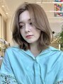 くびれとかきあげた前髪で品と大人っぽさのあるボブスタイル顔周りのレイヤーで流れやすい前髪がポイント色はハイトーンのベージュ系カラーで柔らかさを出しています。渋谷 宮下パーク 駅近