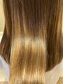 ハイライトブリーチを2回されていたお客様です。根元の癖はしっかり伸ばさせて頂いて、ハイライト部の毛先は以前された矯正も残っていたので髪質改善トリートメントで対応させて頂きました。※毛羽立ちありますが乾かしたのみの状態です。