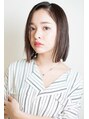 切りっぱなしのストレートボブ。ブラントカットですっきりとモードな印象に。前髪はかきあげバングでクールさをプラスしました。