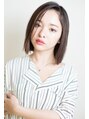 切りっぱなしのストレートボブ。ブラントカットですっきりとモードな印象に。前髪はかきあげバングでクールさをプラスしました。
